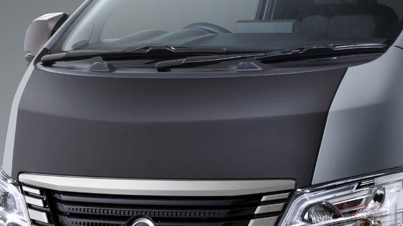 日産自動車が独自開発した業界初となる撥水・防汚・耐候機能を持ち合わせた日産純正のプロテクションラッピング。マット調サテンブラックの高品質フィルムにより、質感のある仕上がりがフードに重厚な存在感を与え、車両全体の印象を引き締め、さらに、高い撥水性・防汚性・耐候性により、美しさを保ちながら愛車をしっかりと保護し、必要に応じて剥がすことが可能。