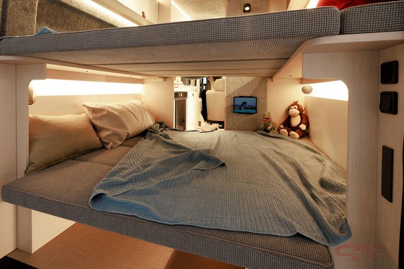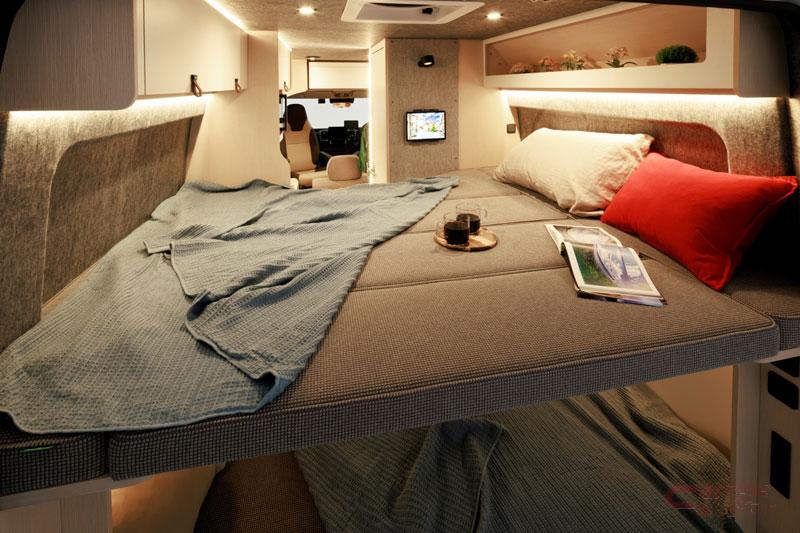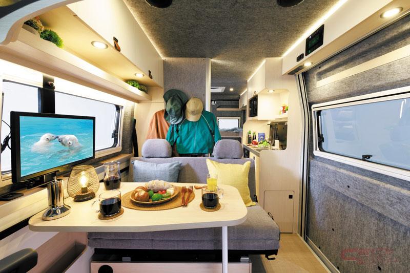 全長6mのゆとりあるフィアット・デュカトL3H2をベースに、リヤ2段のダブルベッド、マルチルーム、キッチンなど、充実の快適装備を標準搭載している他、ファミリーでの家族旅行を快適に彩る装備や工夫を随所に採用している。