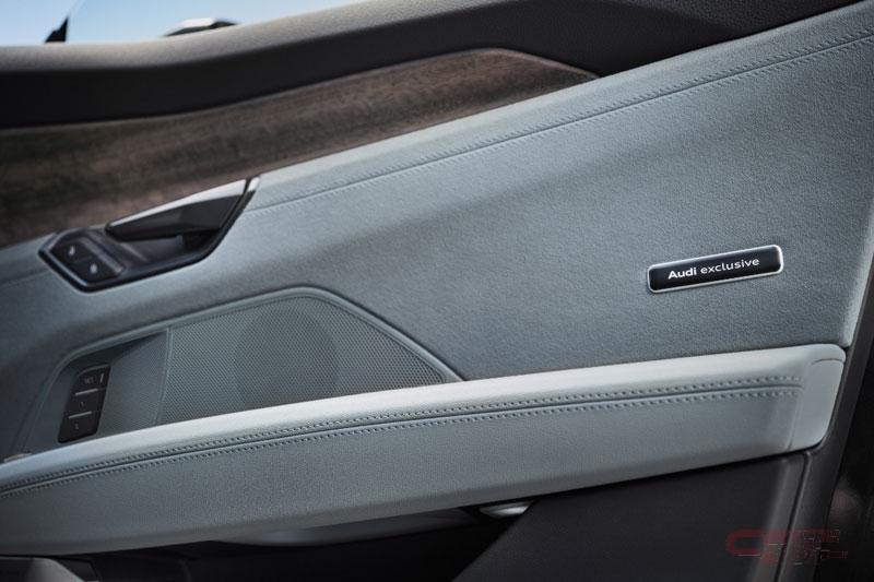 特別装備のAudi exclusive editionのレザーフリーパッケージを採用したスポーツシートには、DinamicaとCascade、アーティフィシャルレザーというサステナブルで高品質な素材を組み合わせ、ウォーターフォールステッチを施している他、ベンチレーションとマッサージ機能を備え、優れた快適性を実現。Audi exclusiveによるデコラティブパネルには、ユーカリアンスラサイトを採用して、上質で落ち着いたキャビンを演出した。