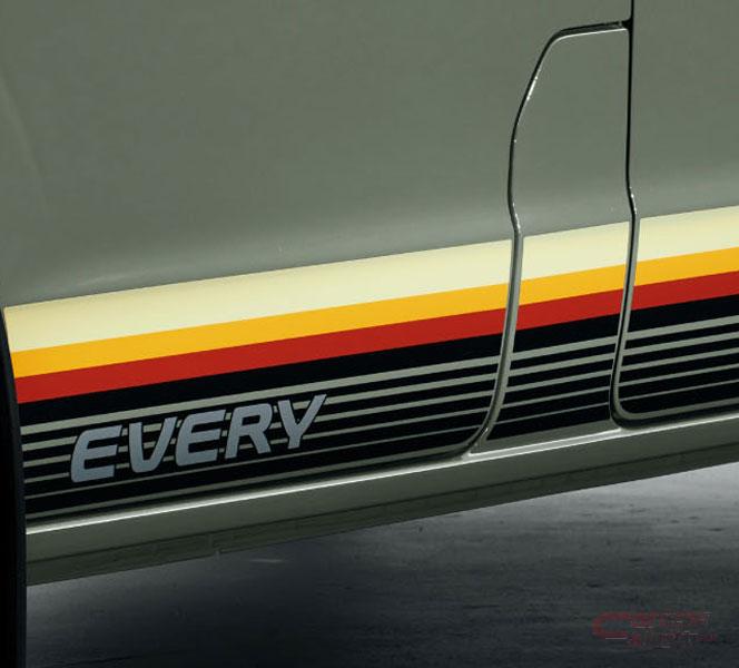 今回設定したJリミテッドは、「エブリイ JOIN ターボ」をベースに、専用のデカールを追加し、ホイールキャップをガンメタリック塗装に変更した他、専用のLEDヘッドランプを採用し、ドアハンドルやバンパーなどをブラックにすることで、標準車とは異なる印象のデザインを採用した特別仕様車。