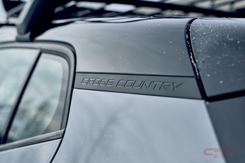また、リアのロアバンパーとCピラーには“CROSS COUNTRY”のロゴが入り、フロントとリアのバンパー下部と一体化した“ヴェイパーグレー”カラーがアクセントとなるインサートや、ダークカラーのホイールアーチ・エクステンションがタフで力強い外観を演出。
