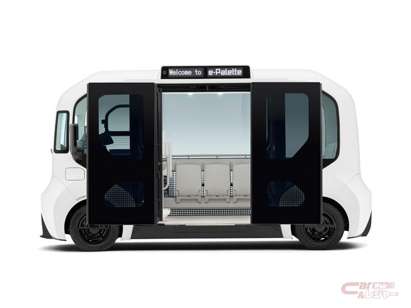 e-Paletteは、広い室内空間や大型ウインドウガラスによる開放感を活かして、人々の移動手段にとどまらず移動する店舗やサービス空間など、一台のクルマを使ってさまざまなモビリティサービスに対応可能な設計を採用しており、自由な発想によるマルチな使い方を通じて新たな移動体験を提供する。