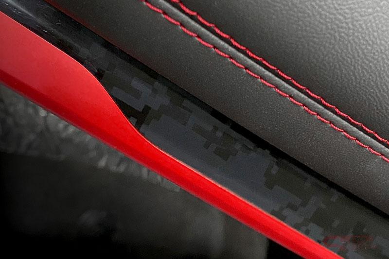 内装では、レッドのトリム、Trail Edition専用のブラックカモフラージュ柄プリント、インストルメントパネルにレッドとブラックの配色を取り入れ、細部にまで丁寧に仕上げられたエレガントなデザインとコントラストの効いた配色で、限定車ならではの特別感を演出。