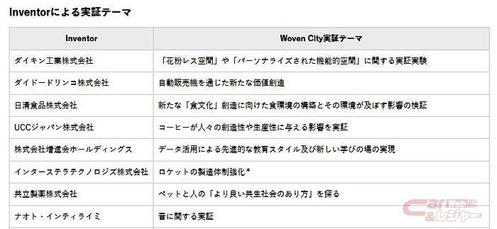 <Inventorとしての参画が決まっているトヨタグループ企業>