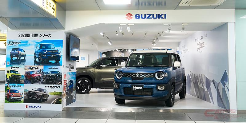 新幹線 浜松駅コンコースでの展示車両には、新色ミスティックブルーメタリック ホワイト2トーンルーフを用意し、7月より展示中の新型「e ビターラ」も併せて展示している。