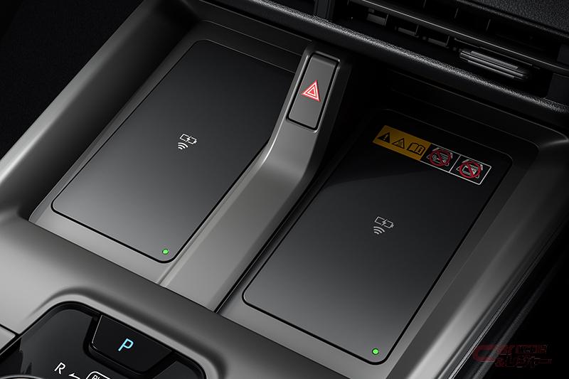 - センターコンソール:形状を変更することで、足元の開放感を向上させるとともに、おくだけ充電(運転席用・助手席用 2台分)を搭載することで使い勝手を向上