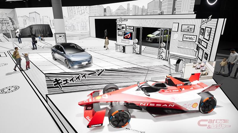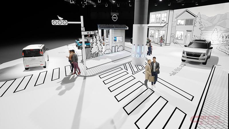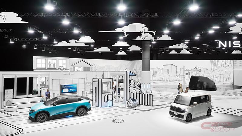 今回の日産ブースでは、「モビリティの未来の姿(#FUTURE)」や「モビリティそのもの(#CULTURE)」など同ショーの考え方を反映し、日本のマンガ文化からインスピレーションを得たモノクロの大胆な色使いが特徴のデザインを採用。新型エルグランドをはじめとする日産車を展示すると同時に、アートと最先端技術が融合した空間として、日産の最先端のイノベーションやサービスを紹介する。