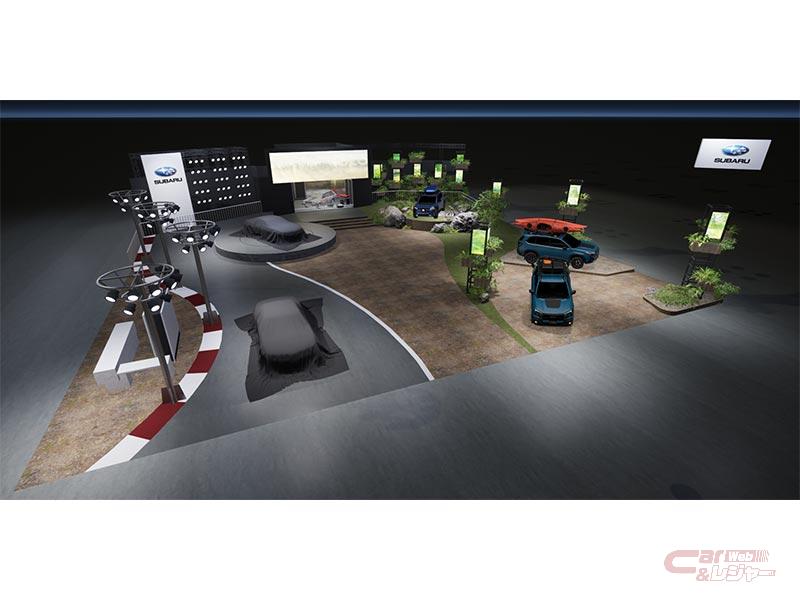ブース内の、Performanceシーンを演出するエリアでは2台のSTIコンセプトモデル「Performance-E STI concept」「Performance-B STI concept」を世界初公開する他、Adventureシーンを演出するエリアでは「Trailseeker prototype」「Forester Wilderness prototype」「Outback Wilderness prototype」といった個性際立つモデルを展示。