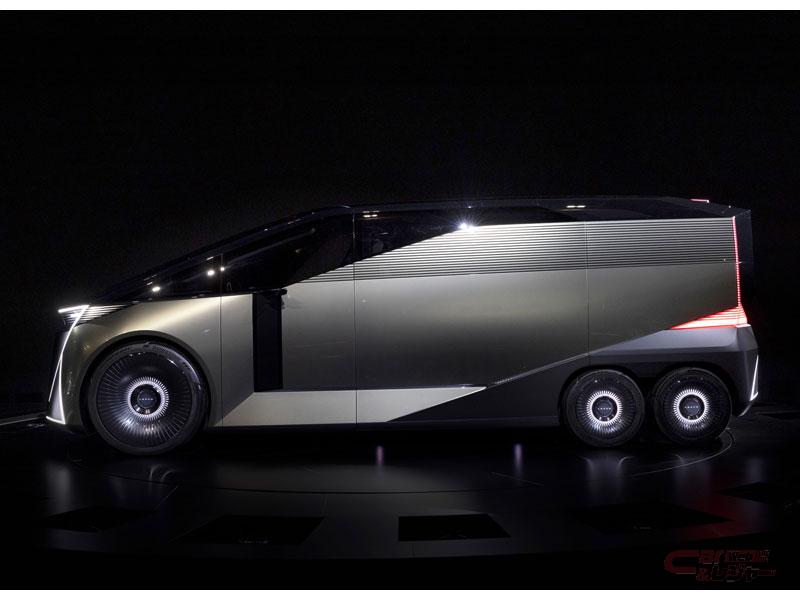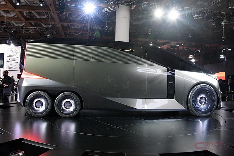 LS コンセプトは、前2輪、後4輪の6輪ミニバンで、LSのSはセダンのSではなく“スペース”だという豊田会長の新しい解釈から、自由であり、特別な空間となるラグジュアリースペースを確保した6輪によるパッケージの革新を実現したコンセプトモデルだ。