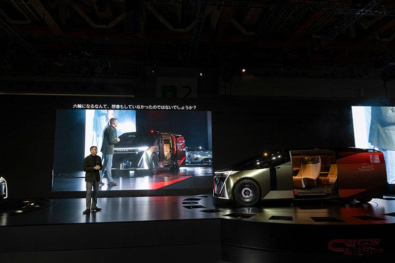 そのような状況を踏まえて、レクサスではフラッグシップを、Luxury Sedanでも、Luxury SUVでもなく、Luxury Spaceとして再定義すると語り、6輪の「LS コンセプト」を初公開した。