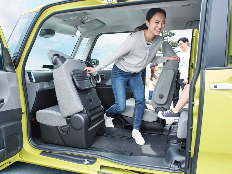加えて、半ドア時の閉め直しを不要とする「助手席イージークローザー」、ドアロックを事前予約できる「タッチ&ゴーロック機能」、開錠操作をすることなくパワースライドドアが自動で開く「ウェルカムオープン機能」を軽で初採用。多彩で簡単なシートアレンジなどと合わせて、使い勝手や快適性を高める機能が数多く装備された。