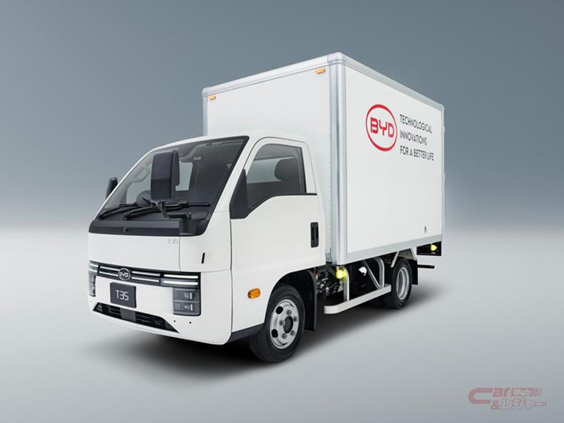 BYD JAPANは10月29日、2026年春に日本市場での発売を予定している小型電気(EV)トラック「T35(ティー サンゴー)」のアルミバンと平ボディを“ジャパンモビリティショー2025”のプレスカンファレンスで世界初公開した。日本での発売は2026年の春を予定しており、価格は架装費込みで800万円前後で検討中。