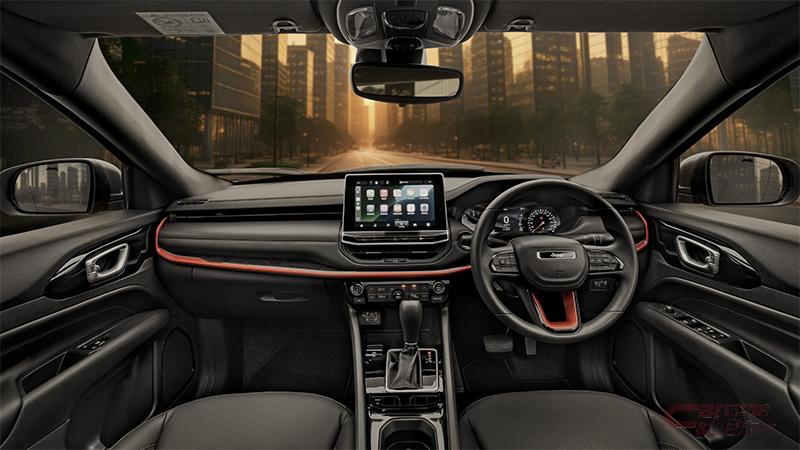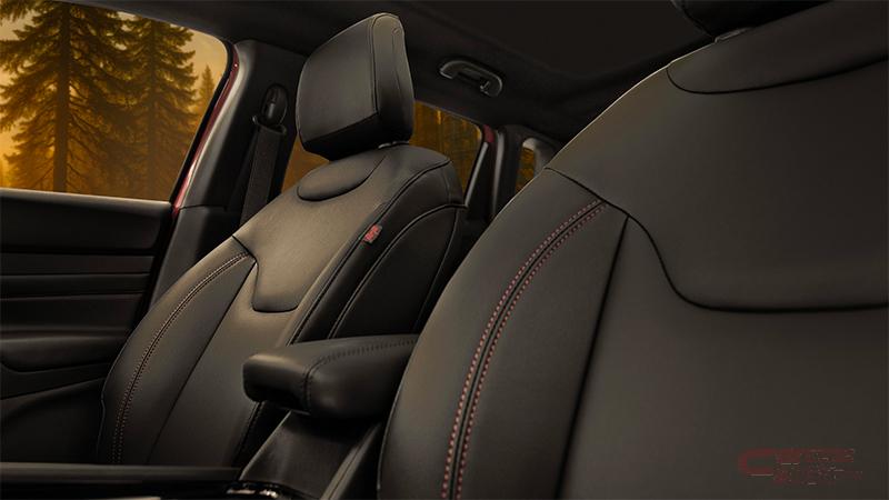 コンパス トレイル エディションは、コンパスのロンジチュード グレードをベースとし、落ち着きのあるブラック&グレーを基調としたボディに、鮮やかなレッドのアクセントを採用した限定車。