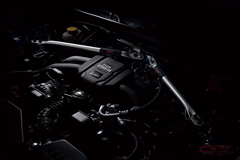 スーパー耐久シリーズ2022 第1戦から、2024第2戦まで参戦した車両「Team SDA Engineering BRZ CNF Concept」と同様の高精度にバランス取りしたFA24エンジンを採用。ピストン、コンロッド、クランクシャフト、フライホイール、クラッチカバーの重量・回転バランス公差を徹底的に低減し、振動が少なく滑らかに吹け上がるレースカーのようなエンジンフィールを実現。