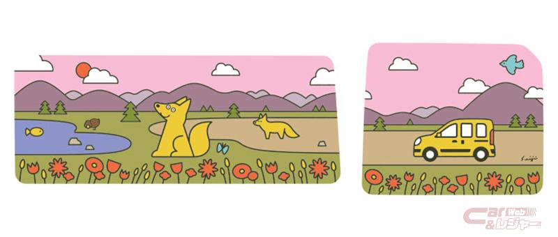 また、カングーデコパネルの発売を記念して、イラストレーターの松本セイジ氏が特別に描き下ろしたイラストのステッカーを20セット限定で販売。