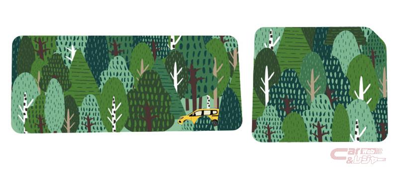 - デザイン種類:10種[木目、合板、ギンガムチェック、トリコロールフラッグ、カングー線画、フレンチブルドッグ、森、コンクリート&付属ステッカー、幾何学模様、花柄、イラストレーター松本セイジ氏による特別デザインステッカー(20セット限定)]