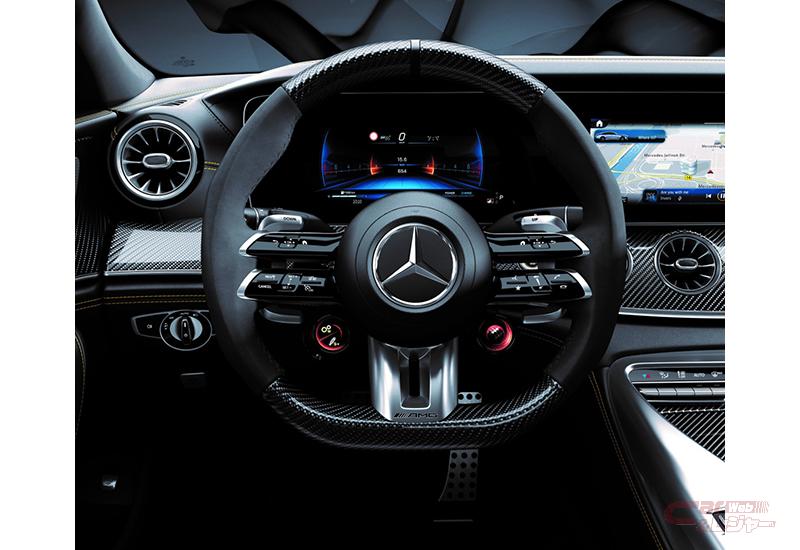 通常モデルで有償オプションの「AMG イエローブレーキ・キャリパー」、「MANUFAKTUR グラファイトグレーマグノ(マット)」に加えて、上位モデルでしか設定できない有償オプション「AMG カーボンエクステリアパッケージ」、「AMG ナイトパッケージⅡ」、「21インチAMGアルミホイール<鍛造>」を標準装備。