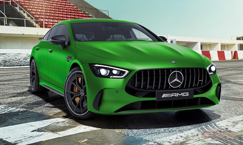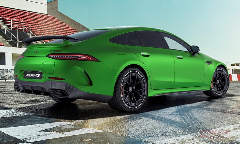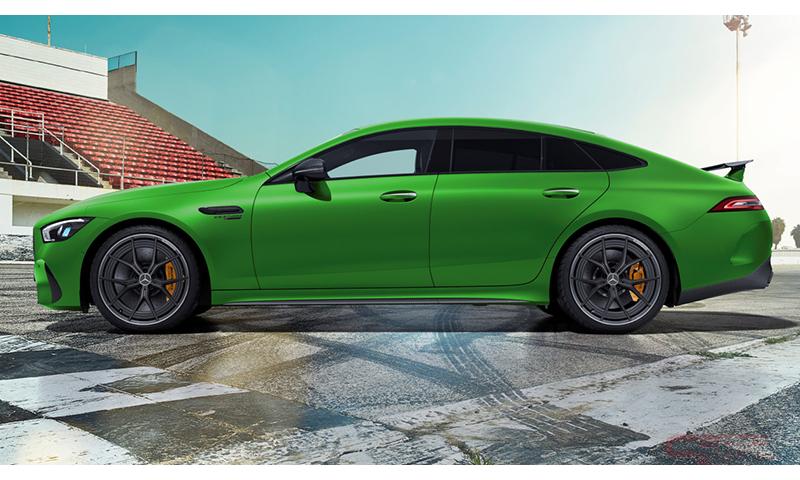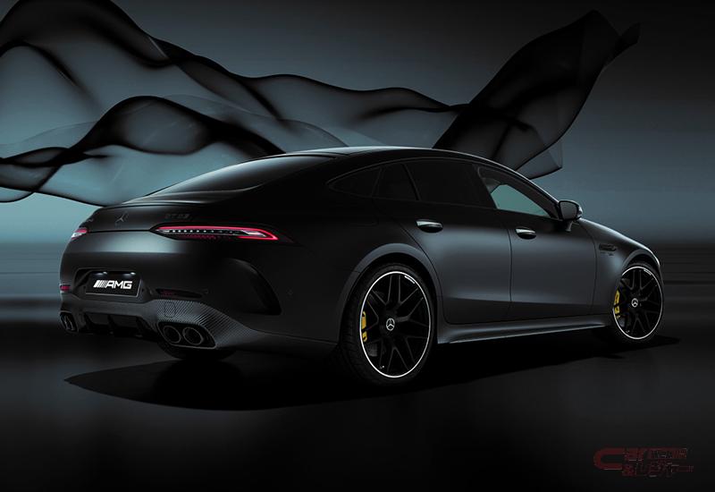 限定装備として圧倒的な存在感を放つ深みのあるグリーンの車体色「AMGグリーンヘルマグノ(マット)」を、メルセデスAMG GT 4ドアクーペとして初採用した他、通常では有償オプションの「AMGカーボンエクステリアパッケージ」、「AMGカーボンファイバードアミラー」、「アジャスタブルリアウイングスポイラー(カーボン)」、「21インチAMGアルミホイール<鍛造>」を標準装備。