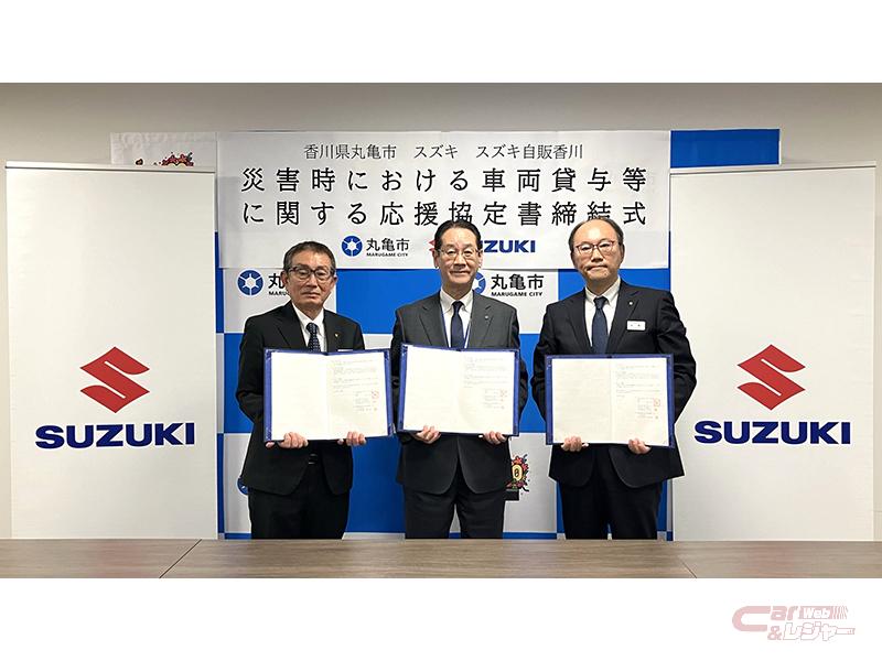 スズキは11月21日、社スズキ自販香川と共同で11月20日に香川県丸亀市と災害時における車両貸与等に関する応援協定を締結したと発表した。
