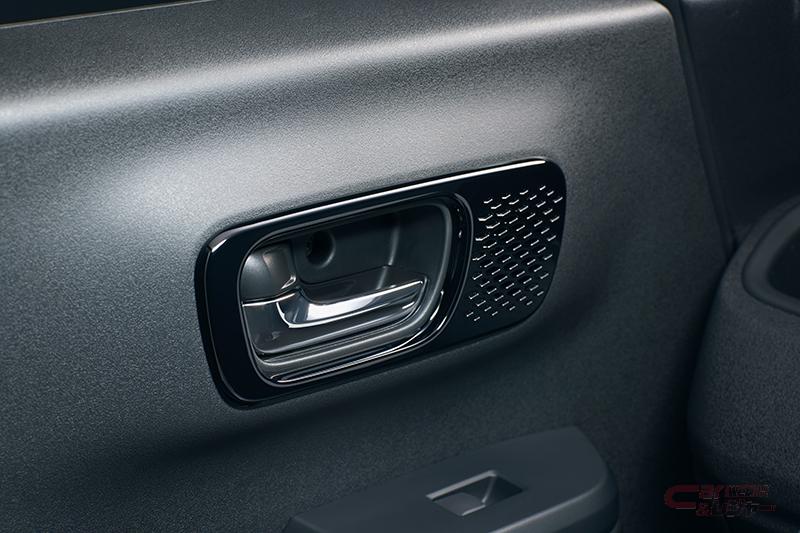 内装では、ピアノブラック塗装のドアオーナメントパネルとプライムスムースドアライニングアームレスト(N-BOX カスタム ターボのみ)を採用し、上質で落ち着きのある室内空間を演出。