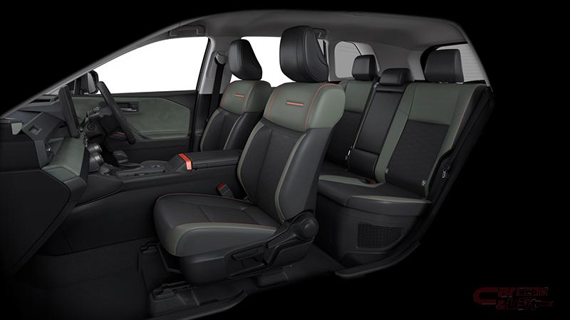 - 「Z」:フロントは、塊感のある「SUVハンマーヘッド」デザインを採用することで力強さを演出。ボディ同色バンパーとメッシュグリルに加え、グリル内側の加飾が先進的かつ立体的な存在感を際立たせ、リヤではバックドアガラスとランプが一体化したシームレスなデザインを採用し、ワイドで洗練された印象を強調。