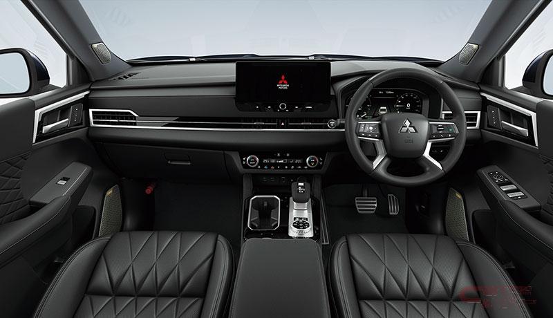 最上級グレードの「P Executive Package」をベースに、外装では、グロスブラック塗装のルーフレール、20インチアルミホイールや前後スキッドプレート、電動格納式ドアミラーの他、フロントグリルモールディング、ダイナミックシールドとフロントフォグランプベゼル、ヘッドライトベゼルをブラックで統一。また、スリーダイヤマークや車名バッジなどをダーク調とし、ウインドウモールディングではブラックステンレスを採用するなど、エクステリアの要所をブラック化することで、より上質で力強い外観を演出。