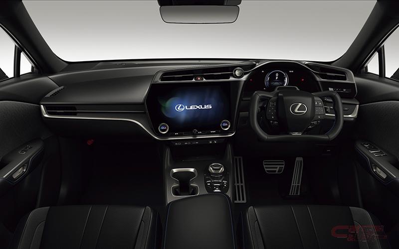さらに、新たに「RZ550e“F SPORT”」をラインナップに追加設定。LEXUSとして初採用となる、次世代の操舵感覚をもたらす「ステアバイワイヤシステム」の他、「インタラクティブマニュアルドライブ(Interactive Manual Drive)」では、加減速におけるシフト操作時の高揚感を高めるサウンドの演出と相まって、スポーティでダイレクトな走行性能を実現。前後モーターの高出力化を施し、300kWの最大システム出力とすることで、より力強く爽快な走りを追求した。外装では“F SPORT”カラーの他、空力性能を向上させるための前後スポイラーとホイールを設定し、内装に“F SPORT”シートやアルミペダル類を装備することでスポーティな世界観を強調。