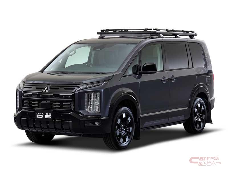 三菱自動車純正アクセサリー装着モデル。新設計したフラットキャリアや、ラリー車をイメージした吊りベルト付き大型マッドフラップ、無骨さ漂うステンレス製のリヤアンダーカバーなどを装着し、「デリカD:5」のタフさを最大限引き出した1台。