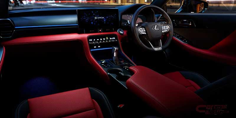 “F SPORT Mode Black Ⅴ”では、ブラック塗装を施したBBS製の鍛造アルミホイールや、LEXUSロゴ入りのレッドブレーキキャリパーを設定(メーカーオプション)した他、内装にはウルトラスエード®のシート、センターコンソール、ドアトリムを採用した。