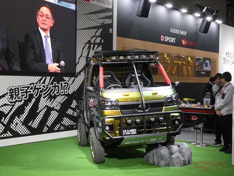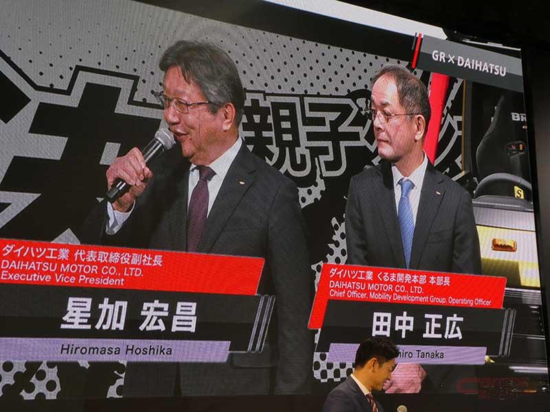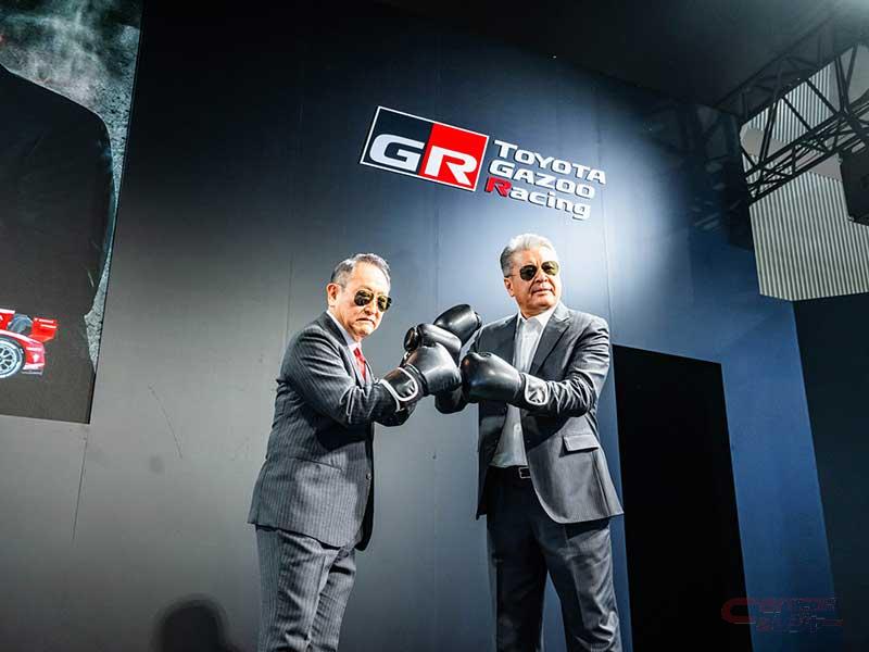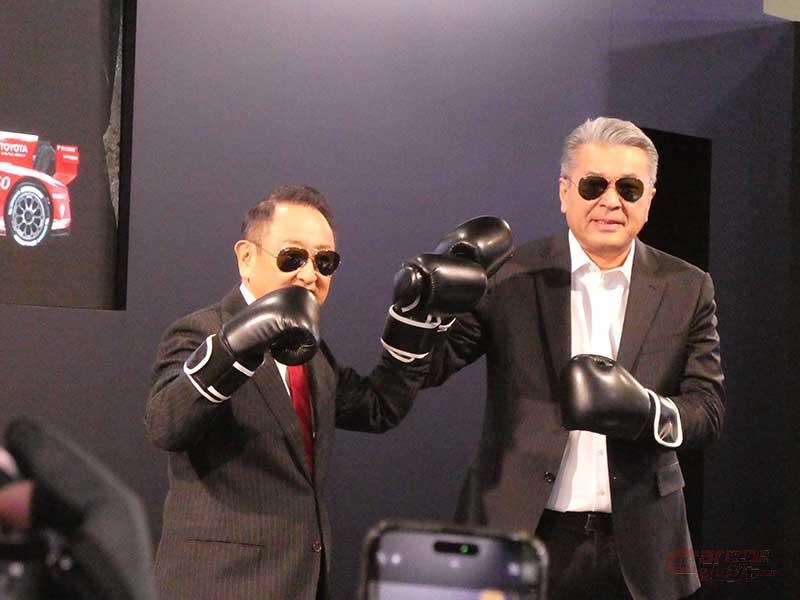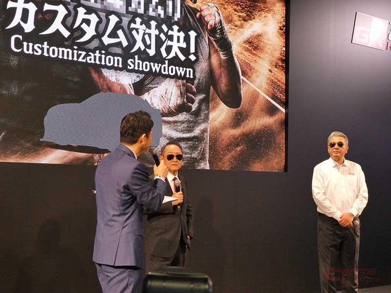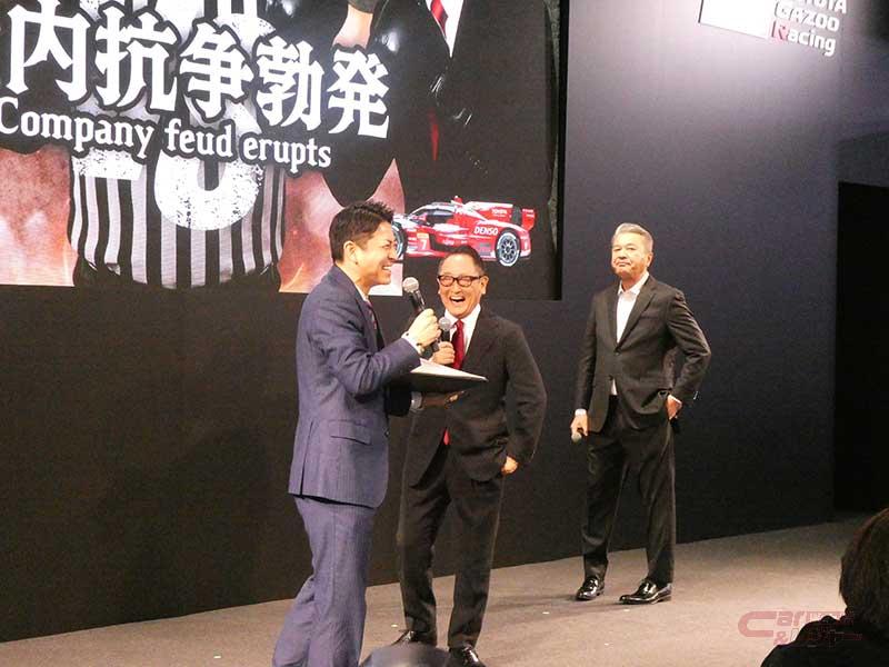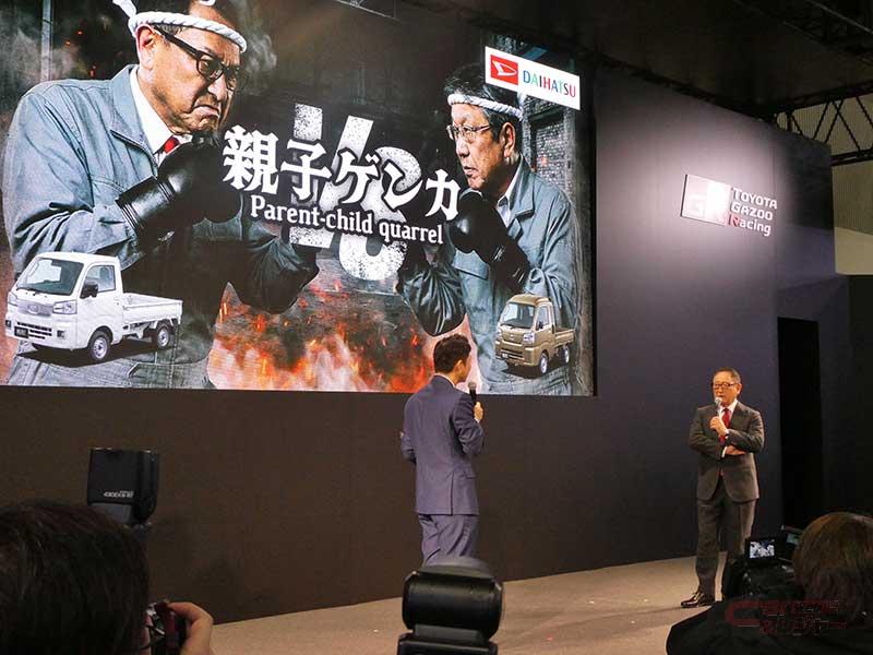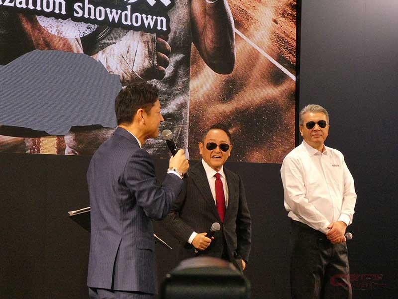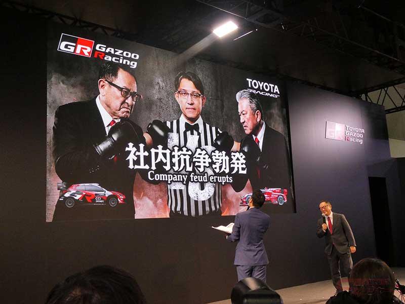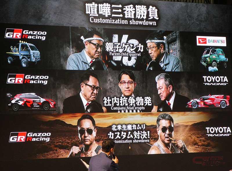 またTGRのプレスカンファレンスでは、モリゾウこと豊田章男会長が登壇し、「喧嘩三番勝負」をテーマに会場を大いに盛り上げた。今回勃発した喧嘩は、<Round1>チームモリゾウ(GR)vsダイハツ「親子ゲンカ」、<Round2>チームモリゾウ(GR)vs TOYOTA Racing「社内抗争勃発」、<Round3>チームモリゾウ(GR)vs TOYOTA Racing「北米生産カムリ カスタム対決」、以上の3つ。