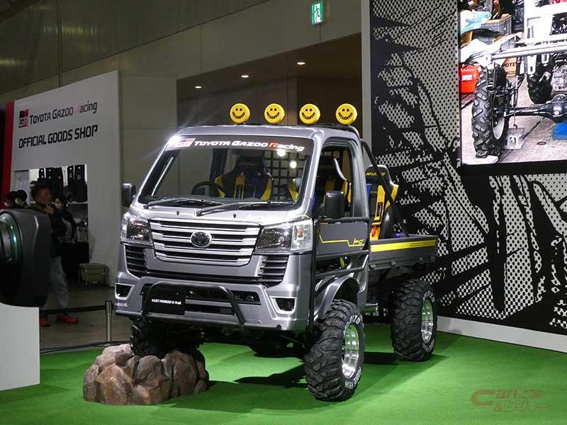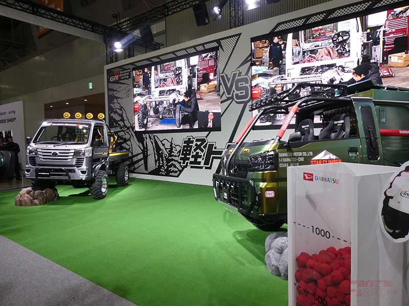 第1ラウンドは、ダイハツとの軽トラ対決。ミッドシップ2シーターの正体とは、ダイハツのハイゼットトラック。ダイハツサイドでは、ダイハツ一筋の星加宏昌 副社長が、技術トップの田中正広くるま開発本部 本部長とタッグを組み、対するモリゾウサイドは、豊田会長の愛車のカスタムを手掛けるプロドライバーの佐々木雅弘選手。それぞれにカスタムを施したハイゼットトラックが披露された。