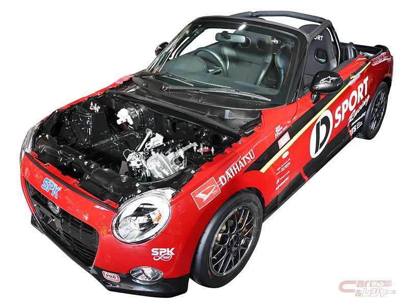 K-OPEN ランニングプロト2は、「コペン」の走る楽しさを未来に繋げるために「作ってみる、乗ってみる、試してみる」の精神で製作した先行スタディ車の「K-OPEN ランニングプロト」を進化させた、モータースポーツ起点のスタディモデル。
