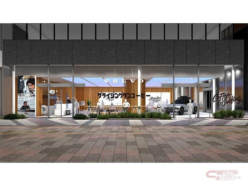 Volvo Studio Tokyo内のカフェスペースにThe Rising Sun Coffeeが期間限定で出店し、坂口さんが提唱する「After Surf」をはじめとしたライフスタイルの世界観を、コーヒーとともに提供する。