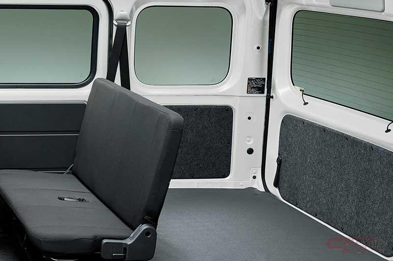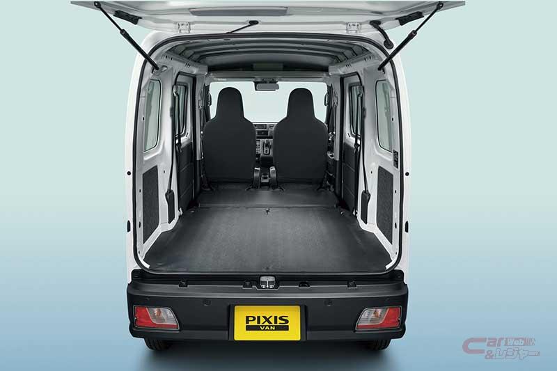ピクシス バン(ガソリン車)同等の荷室空間を確保するとともに、最大積載量350kgを確保。ゆとりのある積載スペース(荷室長1,920㎜×荷室幅1,270㎜×荷室高1,250㎜)に加え、積み下ろしがしやすい荷室フロア地上高630mmを実現。さらに、空間を有効活用した頭上収納「オーバーヘッドシェルフ」や汚れても水拭き可能な「撥水機能付フルファブリックシート表皮」を採用するなど、大きな積載力や積みやすさなどの使い勝手はそのまま継承。