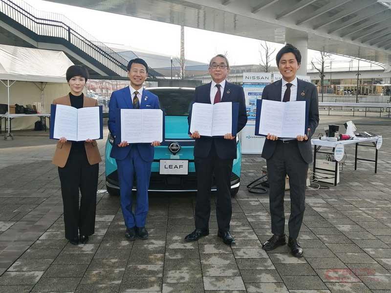 また日産自動車では、国内の販売会社と共に脱炭素化や強靭化(災害対策)を通じて社会の変革を促す日本電動化アクション「ブルー・スイッチ」を推進しているのに加え、EVの普及を通じたゼロ・エミッション社会の構築やSDGsの達成、地域社会の発展に貢献するため、全国の自治体・企業と連携。