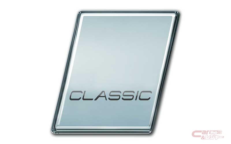チルトアップ機構付電動パノラマ・ガラス・サンルーフを特別装備した他、通常モデルとは異なる専用デザインの19インチ・アルミホイールを採用し、ダイヤモンドカット面とブラックのコントラストが引き締まった足元を強調。テールゲートには最終モデルであることを象徴する「Classic」エンブレムが装着されている。