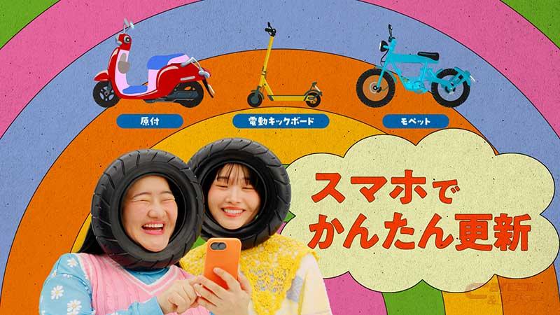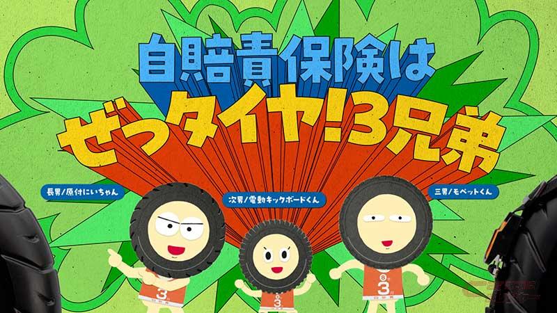 キャンペーンの目玉となる新WEB CM「罰則」篇、「ステッカーチェック」篇では、よしこさん・まひるさんが、“自賠責保険の更新をつい後回しにしてしまう”日常の一場面に、タイヤを被った“タイヤ人間”として登場。そこへ、声優の花江夏樹さん、お笑い芸人のカベポスター(浜田順平さん・永見大吾さん)が声を務める“ぜっタイヤ!3兄弟”が現れ、更新をせずに原付・電動キックボード・モペットを運転すると罰則があるという注意喚起をし、自賠責保険の加入・更新を促すというストーリーだ。
