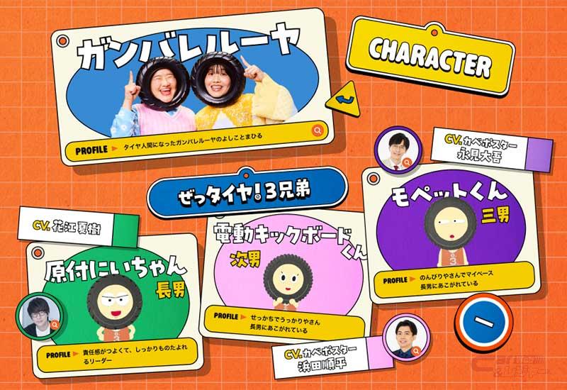 さらに、広報キャラクターとして初参加となるガンバレルーヤへのインタビューおよびメイキング映像の他、“ぜっタイヤ!3兄弟”の声優を務めた花江夏樹さん、カベポスターさんのコメントも公開している。