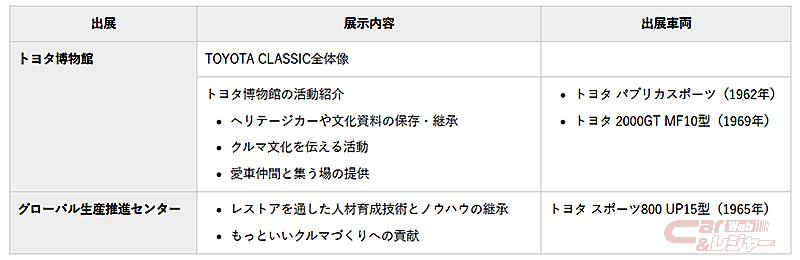 トヨタでは、日本自動車会議所のスローガン「クルマをニッポンの文化に!」の想いに共感し、クルマヘリテージ活動「TOYOTA CLASSIC」として様々な取り組みを推進。
