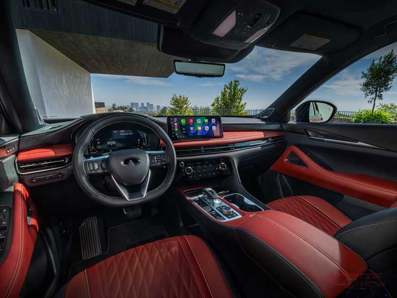 内装では、緻密に仕上げられた素材、丁寧なクラフトマンシップ、直感的に使えるテクノロジーが、インフィニティが掲げる「エレベーテッド・ホスピタリティ」の思想を体現。