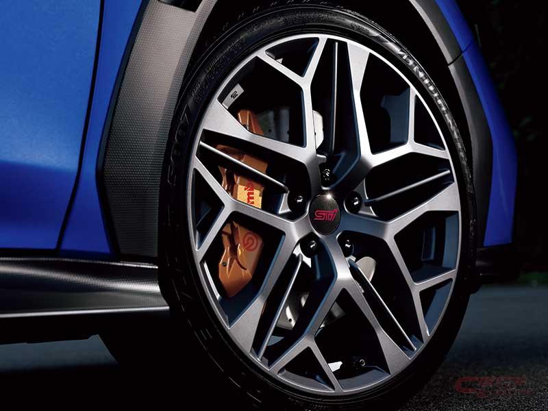 さらに、専用チューニングを施したZF製の電子制御ダンパーやbrembo製ブレーキキャリパー、STIパフォーマンスパーツなどを装備した。