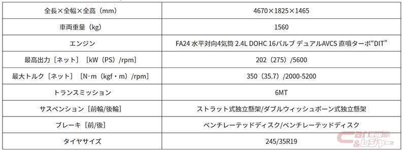 <STIコンプリートカーWRX 「STI Sport♯」の主な諸元>